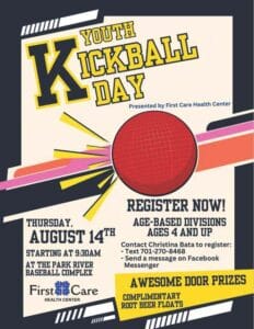 Youth Kickball Day presented by FCHC + Add to Google Calendar+ iCal / Outlook export DateAug 14 2025Expired! Time 9:30 am LocationPark River Baseball ComplexShare this event